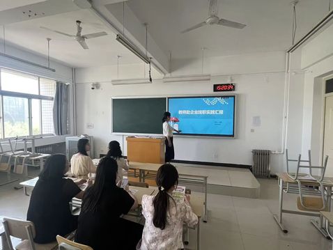 为深化产教融合,提升教师实践教学能力,推动“双师型”教师队伍建设,口腔与康养系四名老师分别利用暑期深入企业一线挂职锻炼,为了将临床一线技能经验结合到教学应用中,9月1日,下午在2教315教师进行了汇报交流。